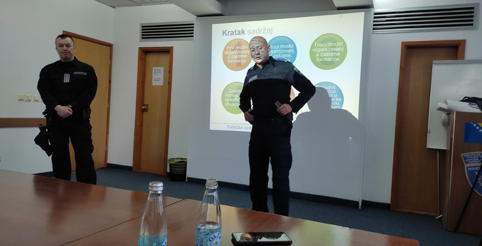 Predstavnik Sektora za obezbjeđenje VIP ličnosti i objekata, g. Đorde Blagojević je kroz prezentaciju i praktične pokaze iz poslova i zadataka istoimenog sektora približio studentima modele zaštite, zaštitne formacije, postupke reagovanja i opremu kojom raspolažu. S tim u vezi, studenti su prisustvovali i taktičko-pokaznoj